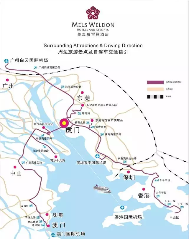天河区—广园快速—S3广深沿江高速—南面大道—虎门大道—酒店
