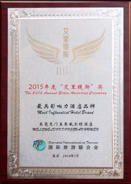 热烈祝贺东莞虎门美思威尔顿酒店荣获2015年度“艾里缇斯奖最具影响力酒店品牌”!