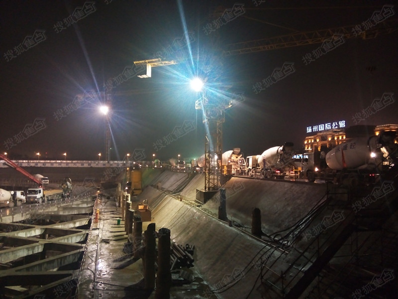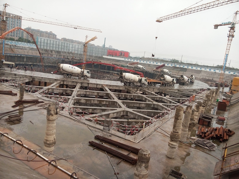 280米的美思威尔顿商业中心,基础工程占地2万5千平米、深25米。整个基础底板纵横向157米×150米,是目前扬州乃至苏中之最。该基础底板按照建筑结构设计要求拆分为9块,目前已完成局部裙楼基础底板浇筑,主楼基础底板更是于2014年11月3日浇筑完成。本次浇筑完成的主楼基础底板,其用钢量约2200T。主楼基础底板3.5米厚,面积约3000㎡,经过约30天的施工准备和钢筋施工,已具备了砼浇筑条件,采用4台砼机同时浇灌,每小时供应220立方砼,连续作业48小时,共计供应砼量为10000立方。据项目负责人介绍说,这么大的工程量,就扬州来说实属罕见。